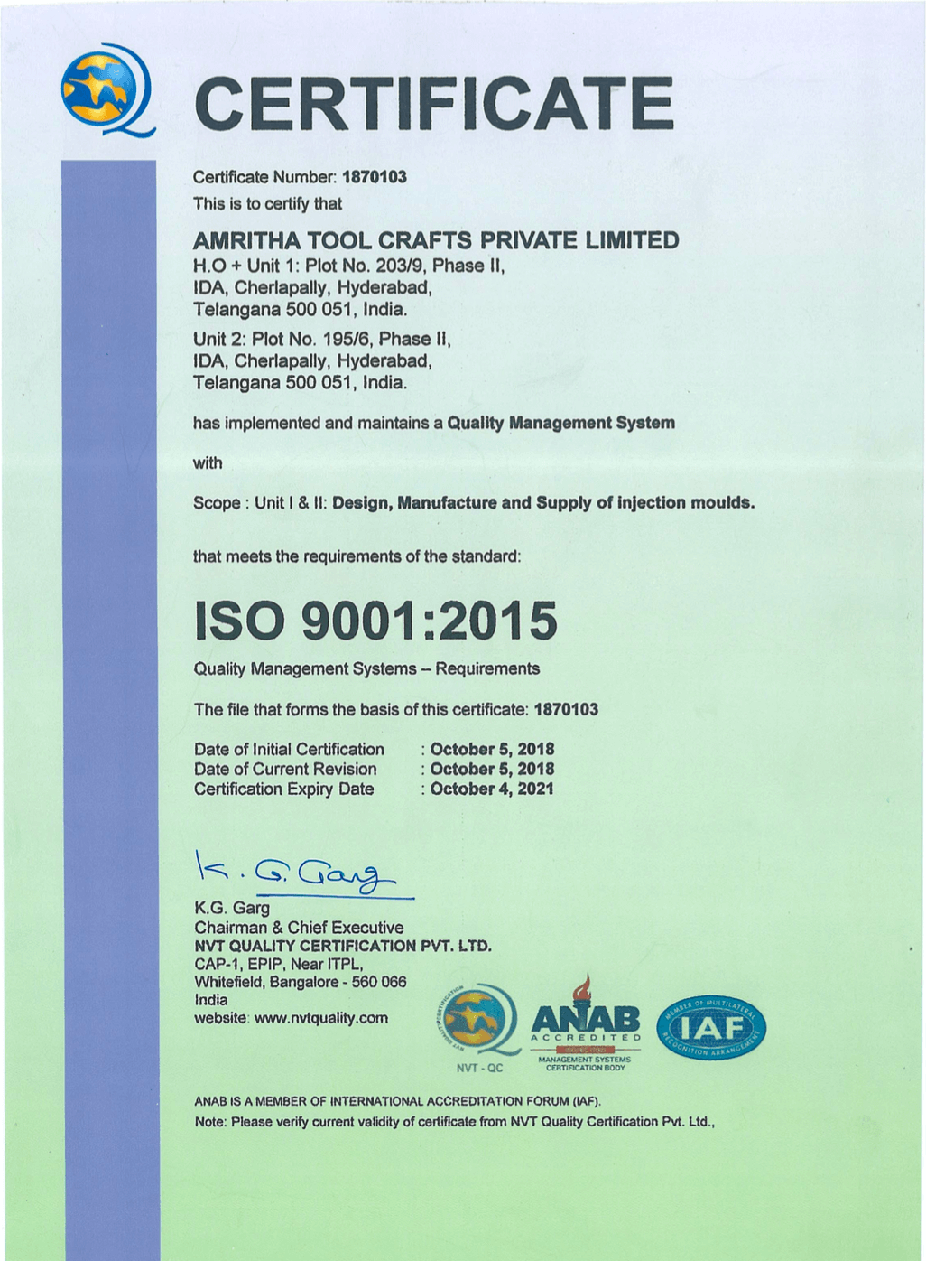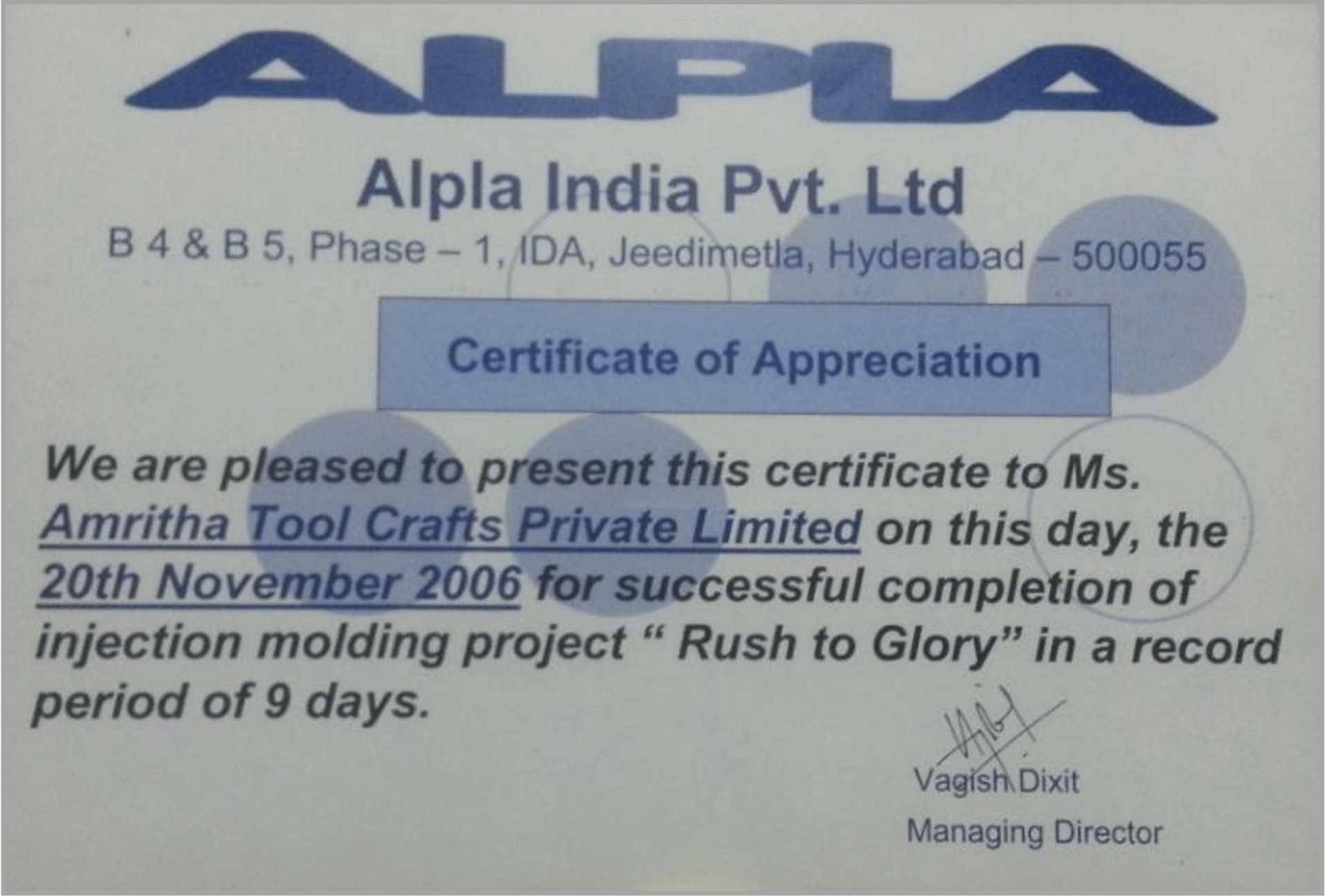 96 – Cavity Mold in 275Ton Machine and delivered 5 Molds in 6 Months Time