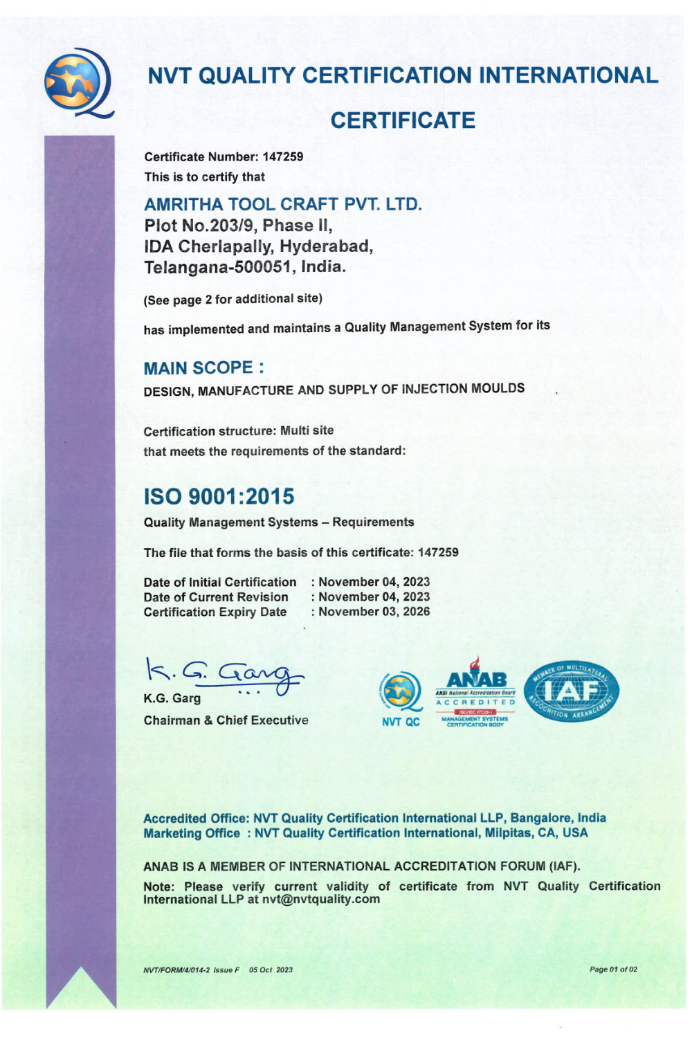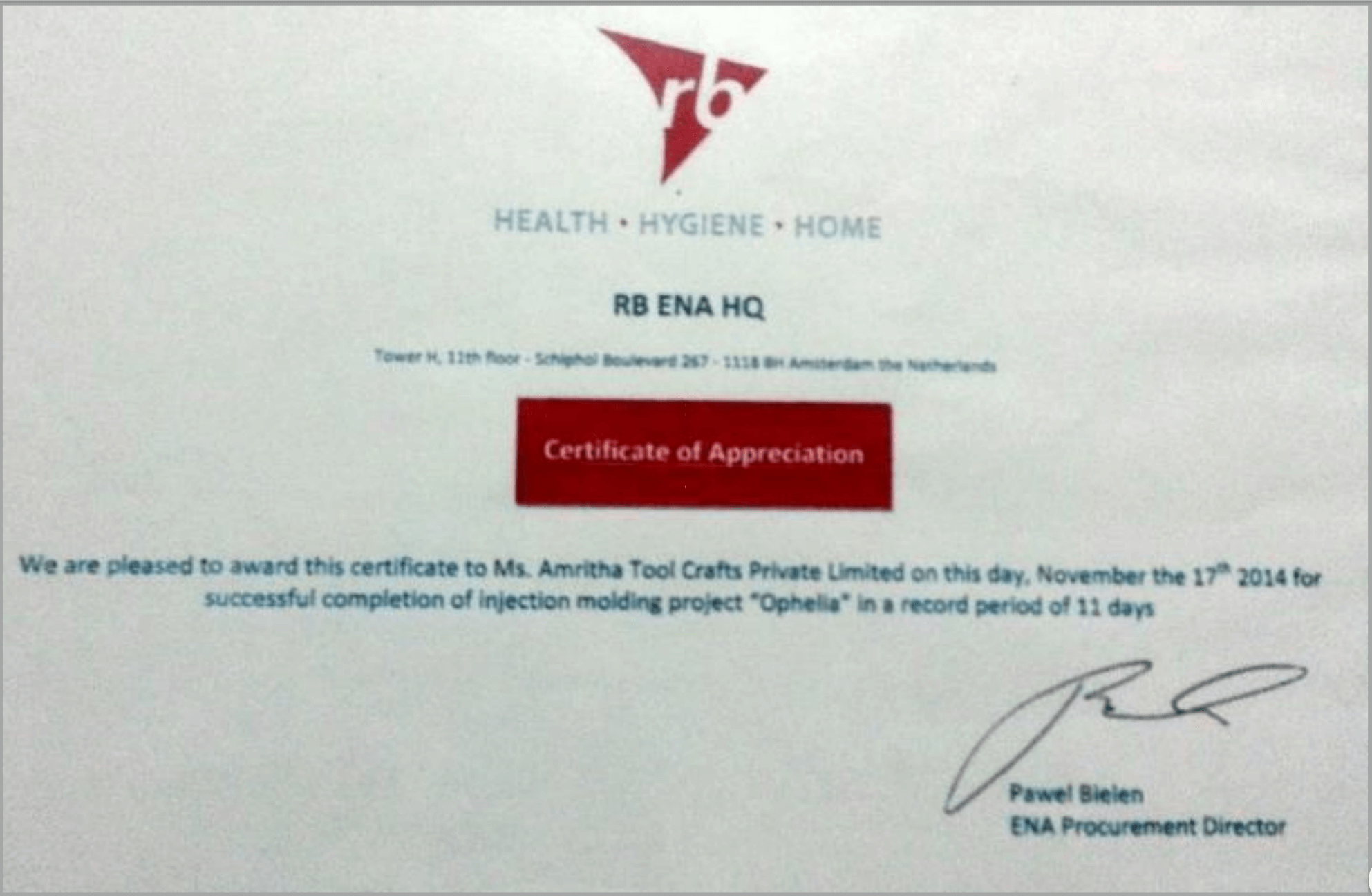 96 – Cavity Mold in 275Ton Machine and delivered 5 Molds in 6 Months Time